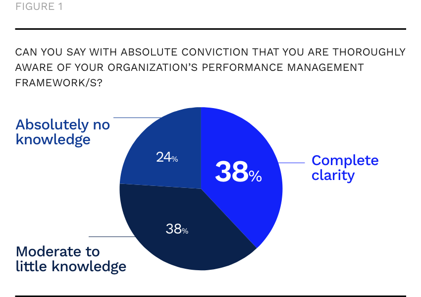 With a significant number of employees stating they had absolutely zero clarity about performance management processes in their organizations (24%), organizations must see this as a wake-up call. While this result can be attributed to some respondents being new to the company, in an ideal scenario, organizations must not have any employee who lacks clarity about such a key program especially when it directly impacts their own growth in the system.