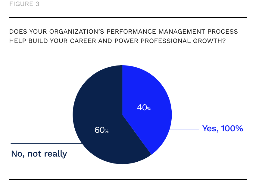 A critical part of performance management systems is the idea that they help boost individual careers / professional journeys. Our survey findings showed us that this is yet another area that organizations must work to strengthen.